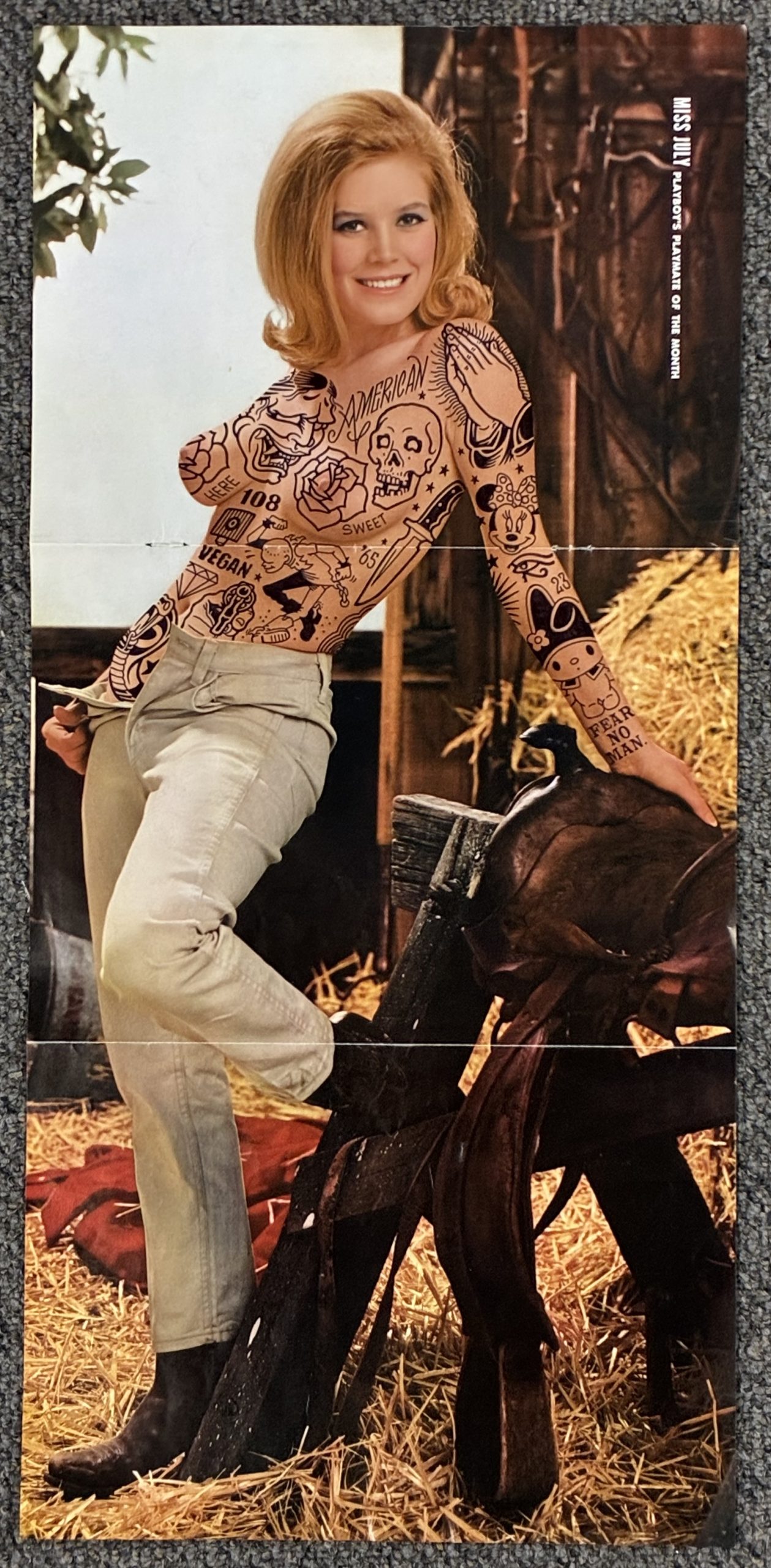 11″x23.5″, permanent marker on Playboy magazine centerfold from July 1964. Signed and dated on reverse side. Includes thumbprint from artist’s right hand. Available to US customers only. Shipped via USPS.